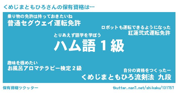 | ヒーロー風カッコイイあだ名 | 『スーパークメジマトモヒロ』 |