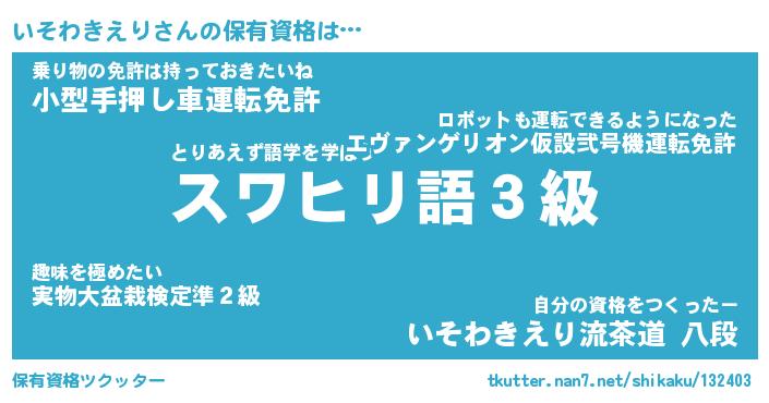 | 伝説のあだ名 | 『伝説の傭兵いそわきえり』 |