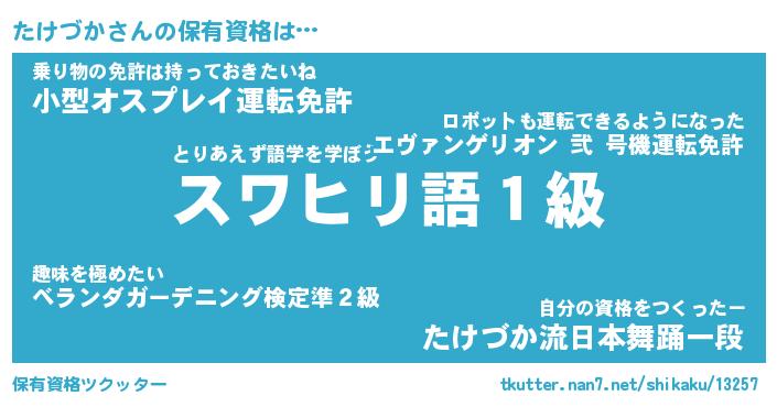 | ヒーロー風カッコイイあだ名 | 『スーパータケヅカ』『天弓騎士タケ』 |