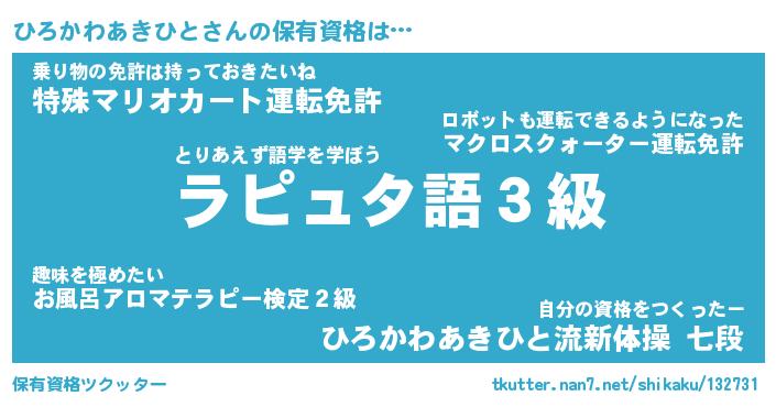 | 肩書あだ名 | 『ひろかわあきひと店長』 |