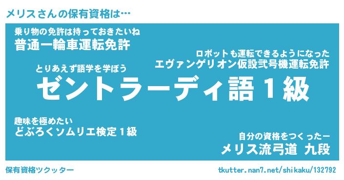 | ファンタジー風あだ名 | 『メリフェル』『エターナルメリスー』 |