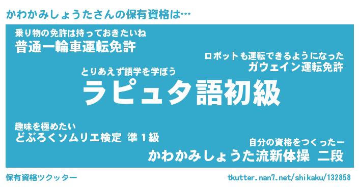 | 肩書あだ名 | 『かわかみしょうた御曹司』 |