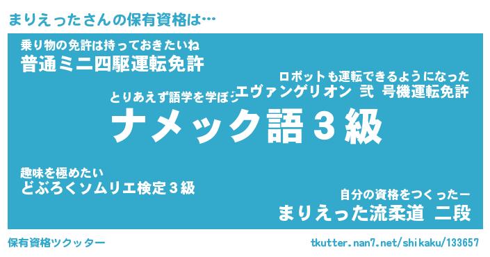 | ファンタジー風あだ名 | 『マリフェル』『エターナルマリエッター』 |