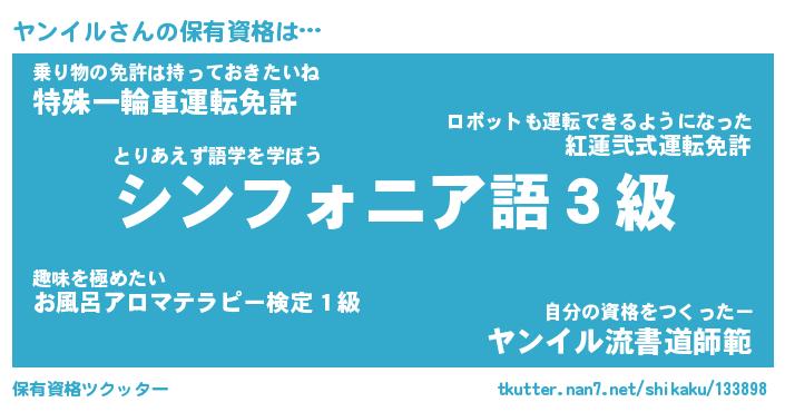 | 意味不明あだ名 | 『ペロリンヤンイル』『永久保存ヤンイル』 |