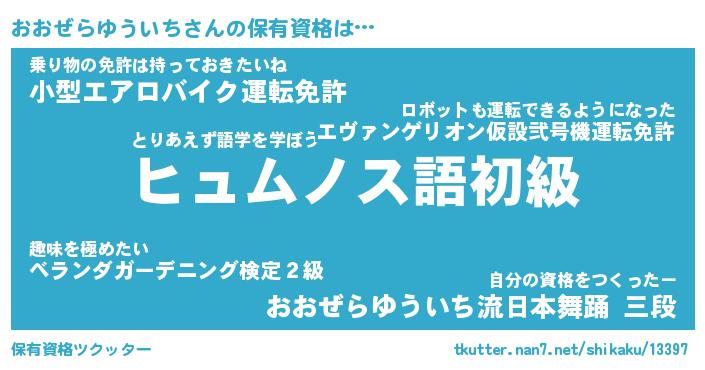 | 肩書あだ名 | 『おおぜらゆういち御曹司』 |