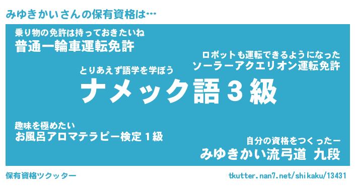 | ファンタジー風あだ名 | 『ミユフェル』『エターナルミユキカイー』 |