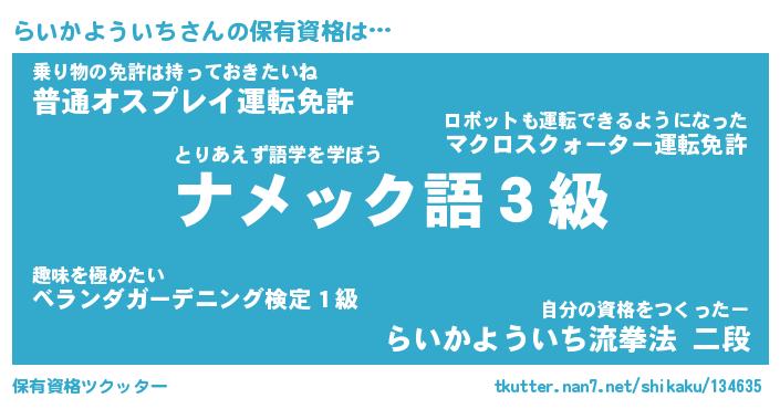 | ヘコむあだ名 | 『らいにゅー』『つくし』『らいお』 |