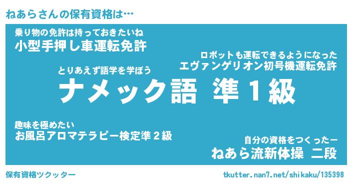 | ヒーロー風カッコイイあだ名 | 『スーパーネアラ』『ウルトラねあらマン』 |