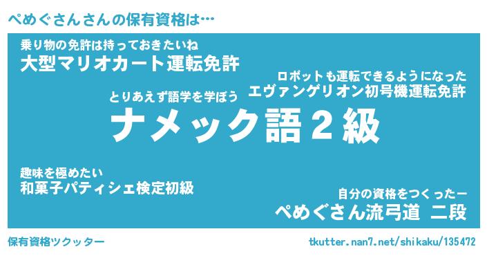 | ファンタジー風あだ名 | 『ペメフェル』『エターナルペメグサンー』 |