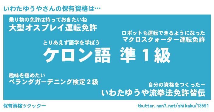 | ヒーロー風カッコイイあだ名 | 『スーパーイワタユウヤ』『天弓騎士イワ』 |