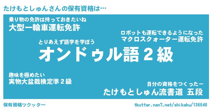 | 伝説のあだ名 | 『封印されし竜騎士たけもとしゅん』 |
