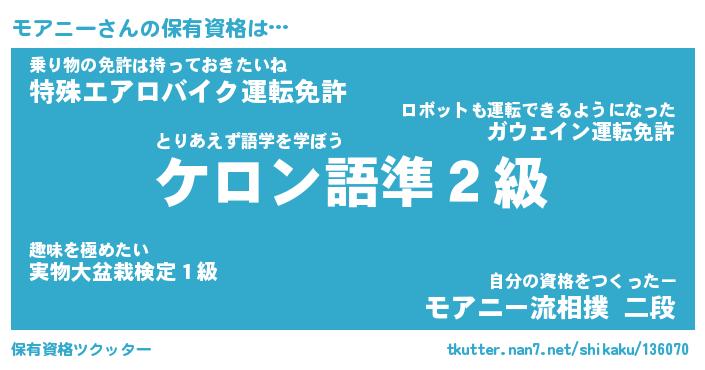 | ヒーロー風カッコイイあだ名 | 『スーパーモアニー』『天弓騎士モア』 |