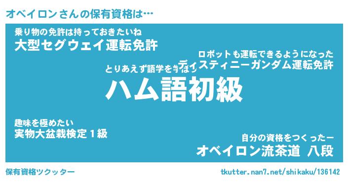 | ファンタジー風あだ名 | 『オベフェル』『エターナルオベイロンー』 |