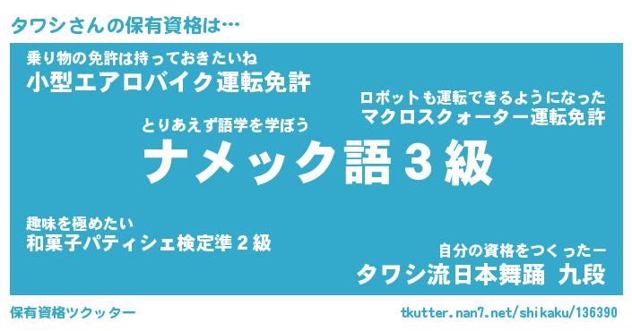 | ヒーロー風カッコイイあだ名 | 『スーパータワシ』『ウルトラタワシマン』 |