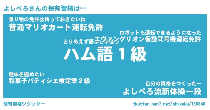 | 意味不明あだ名 | 『ペロリンよしぺろ』『永久保存よしぺろ』 |