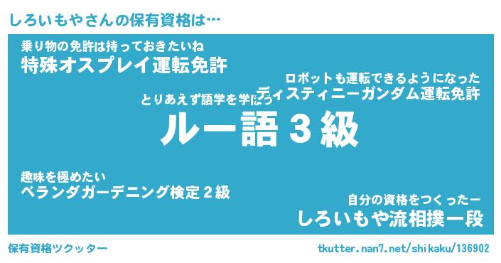 | 自動車の名前っぽいあだ名 | 『シロティマ』『シクア』『シント』 |