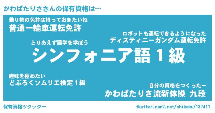 | ヒーロー風カッコイイあだ名 | 『スーパーカワバタリサ』『暗黒騎士カワ』 |