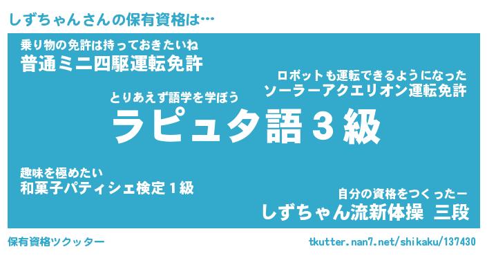 | ヒーロー風カッコイイあだ名 | 『スーパーシズチャン』『天弓騎士シズ』 |