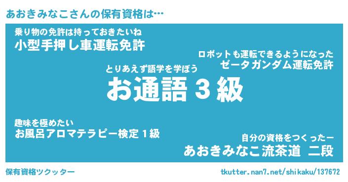 | ヒーロー風カッコイイあだ名 | 『スーパーアオキミナコ』『幻影騎士アオ』 |