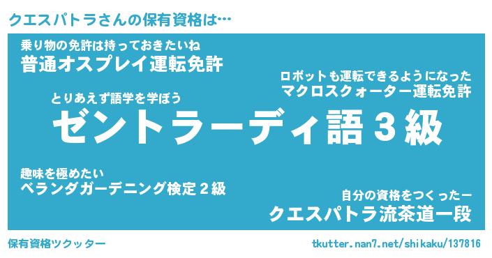 | ポケモン風あだ名 | 『クエチュウ』『クエスダネ』 |