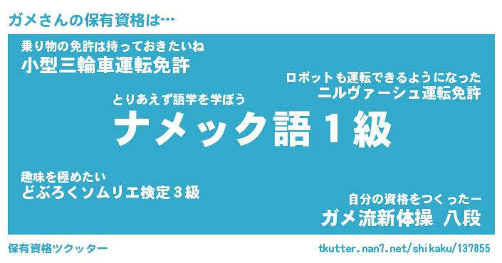 | ヒーロー風カッコイイあだ名 | 『スーパーガメ』『ウルトラガメマン』 |