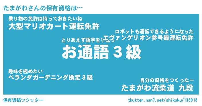| ファンタジー風あだ名 | 『タマフェル』『エターナルタマガワー』 |