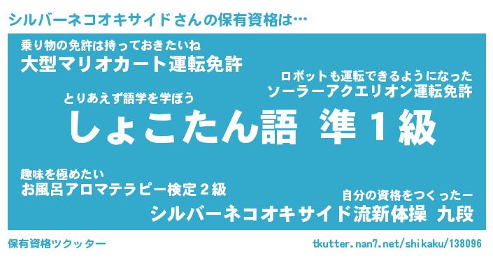 | 男性向けラノベタイトル風あだ名 | 『シルバーネコオキサイドアートオンライン』 |