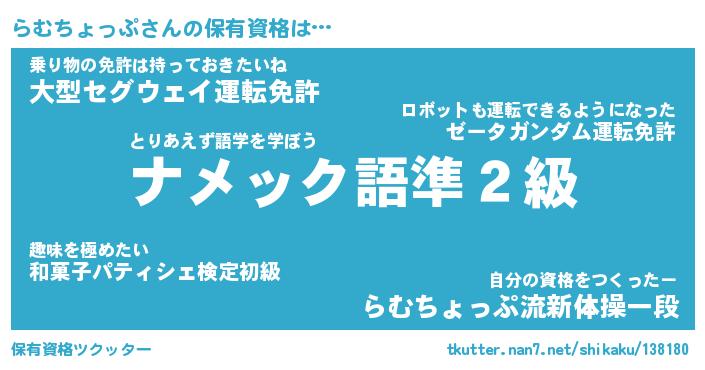 | 胡散臭い通販商品みたいなあだ名 | 『モテモテ間違いなし霊験あらたかなお札…その名も「らむちょっぷ」』 |
