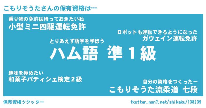 | 男性向けラノベタイトル風あだ名 | 『コモリソウタアートオンライン』 |