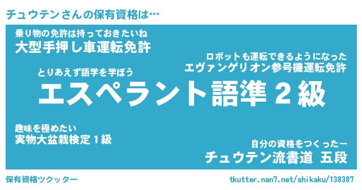 | ファンタジー風あだ名 | 『チュフェル』『エターナルチュウテンー』 |