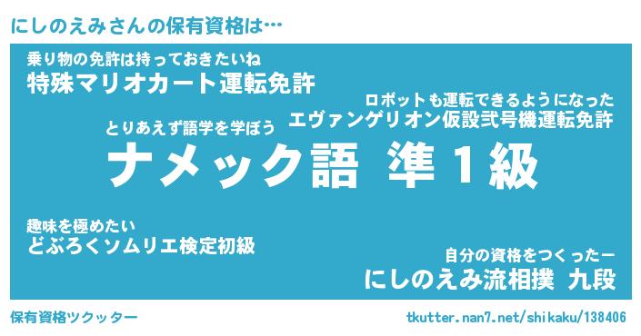 | ファンタジー風あだ名 | 『ニシフェル』『エターナルニシノエミー』 |