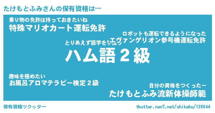 | 肩書あだ名 | 『たけもとふみ社長』『たけもとふみ塾長』 |