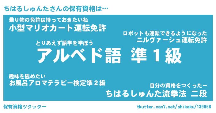 | 男性向けラノベタイトル風あだ名 | 『チハルシュンタアートオンライン』 |
