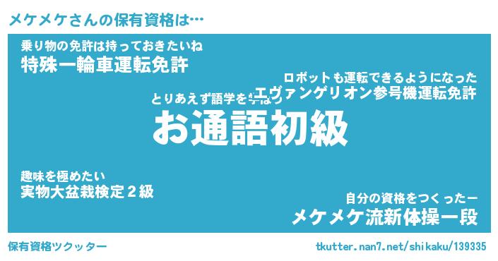 | 意味不明あだ名 | 『ペロリンメケメケ』『永久保存メケメケ』 |