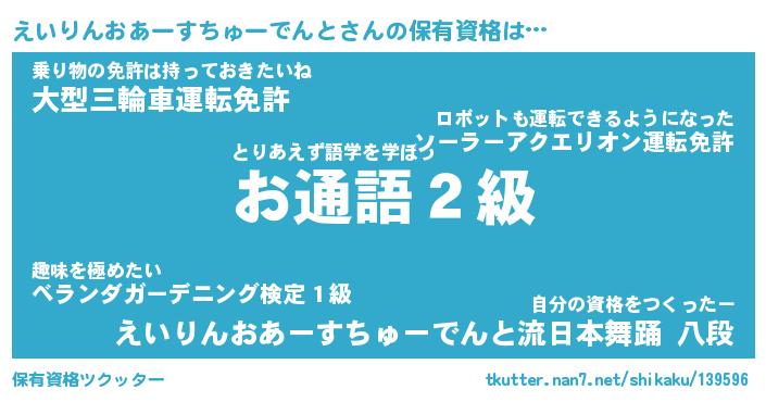 | 料理風あだ名 | 『節約★えいりんおあーすちゅーでんとと油揚げの玉子丼』 |
