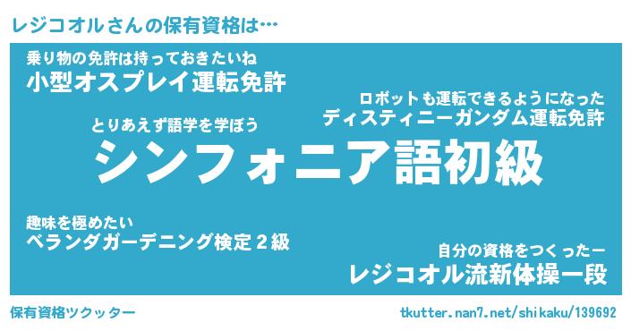 | ファンタジー風あだ名 | 『レジフェル』『エターナルレジコオルー』 |