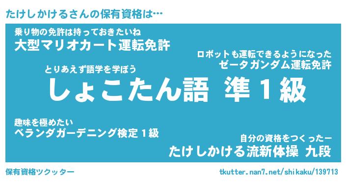 | ヘコむあだ名 | 『たけにゅー』『なまこ酢』『たけお』 |