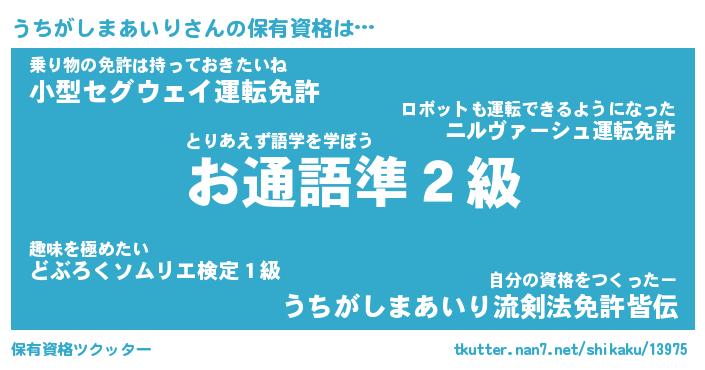 | 男性向けラノベタイトル風あだ名 | 『うちがしまあいりの憂鬱』 |