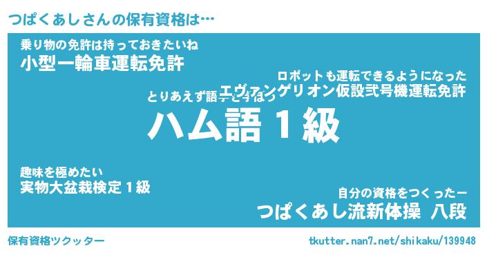 | 猫 | 猫の名前『つぱつぱにゃん』性別『雌』 |