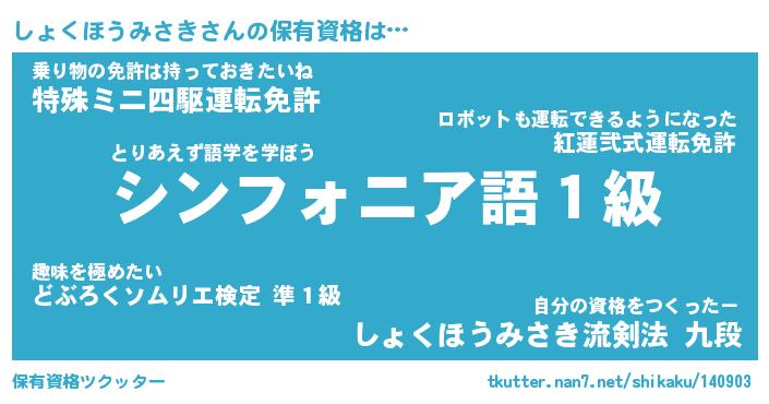 | 男性向けラノベタイトル風あだ名 | 『しょくほうみさきの憂鬱』 |