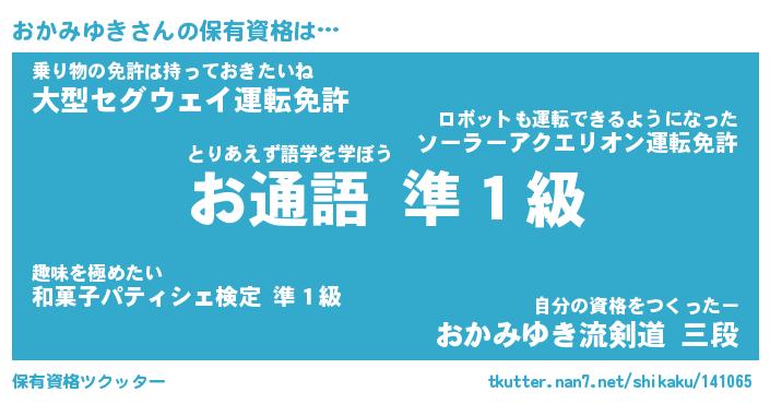 | 女子向けラノベタイトル風あだ名 | 『(仮)おかみゆきのやんごとなき事情』 |