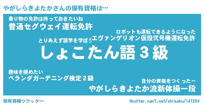 | 肩書あだ名 | 『やがしらきよたか店長』 |