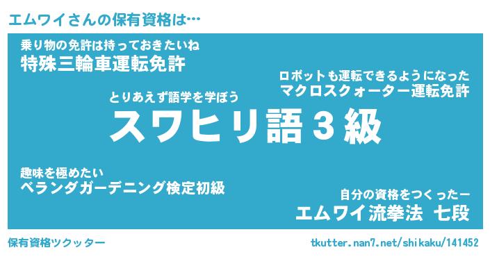 | 伝説のあだ名 | 『伝説の傭兵エムワイ』 |