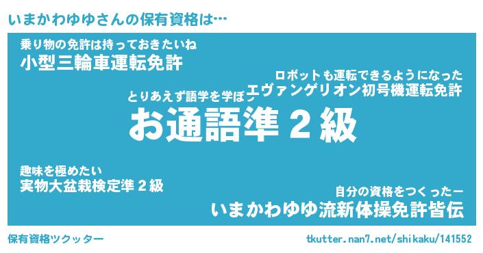| ヒーロー風カッコイイあだ名 | 『スーパーイマカワユユ』『魔戒騎士イマ』 |