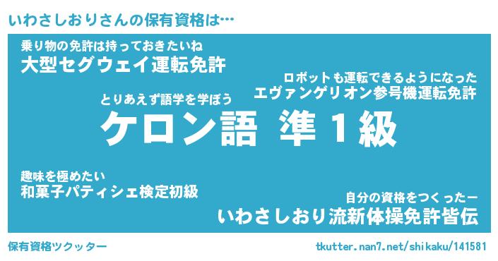 | ヒーロー風カッコイイあだ名 | 『スーパーイワサシオリ』『魔戒騎士イワ』 |