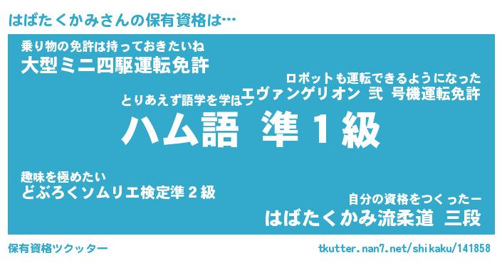 | ヒーロー風カッコイイあだ名 | 『スーパーハバタクカミ』『幻影騎士ハバ』 |