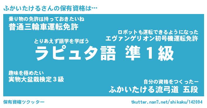 | 男性向けラノベタイトル風あだ名 | 『フカイタケルアートオンライン』 |