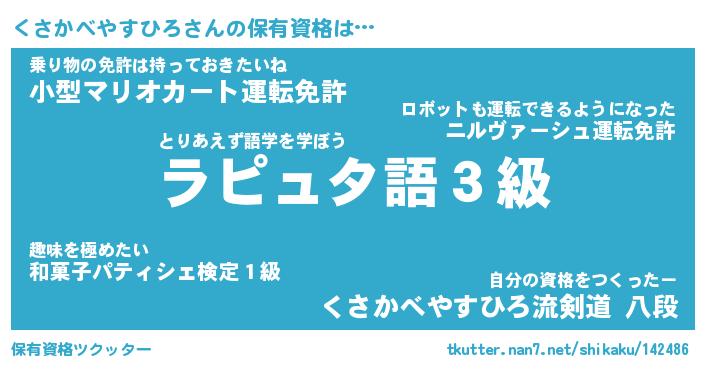 | 肩書あだ名 | 『くさかべやすひろ店長』 |