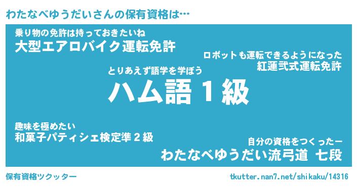 | 意味不明あだ名 | 『ペロリンわたなべゆうだい』 |