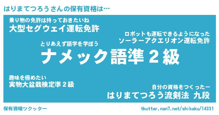 | 男性向けラノベタイトル風あだ名 | 『はりまてつろうの憂鬱』 |